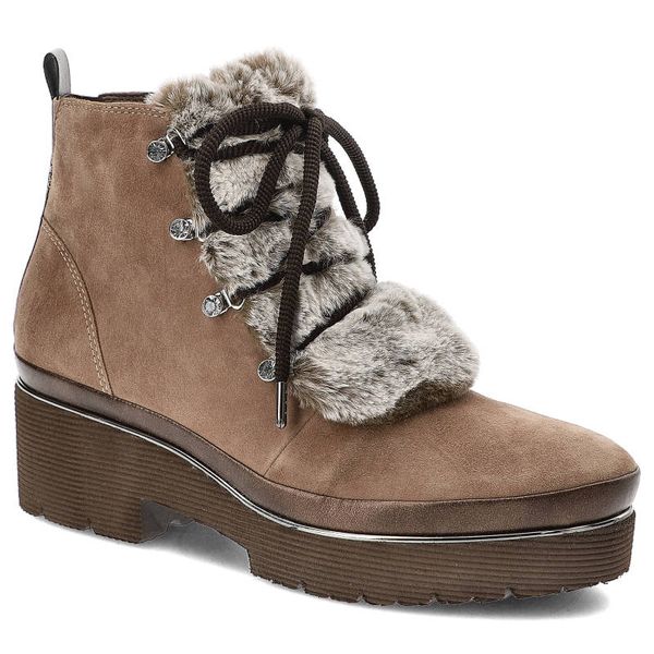 Botki damskie Tamaris, z miękkiej skóry zamszowej z ocieplanym wykończeniem i sznurowaniem na metalowych haczykach oraz grubą podeszwą, taupe, 1-2626