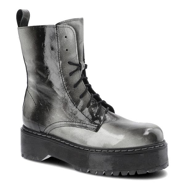 Botki damskie Lemar, naturalna skóra lakierowana sznurowanie usztywniona cholewka podeszwa o podwyższonym profilu i wyraźnym bieżniku, szare, 60329-R
