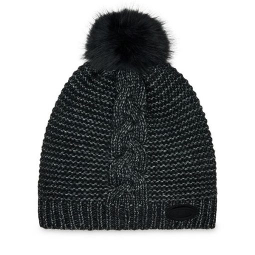 Czarna Czapka z Wiskozą Zdobiona Cyrkoniami i Futrzanym Pomponem Jackilda