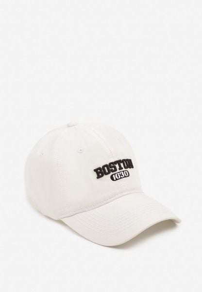 Biała Czapka z Daszkiem w Bawełny Zdobiona Napisem w Stylu Haftu Reioni