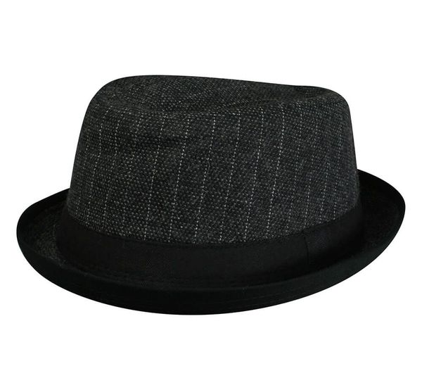 Kapelusz Grafitowy w Paski, Jesienno-Zimowy, Wełniany, Trilby, Męski, z Paskiem -JAREK