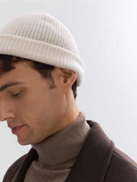 Czapka typu beanie, wykonana z wełny merino z kaszmirem.