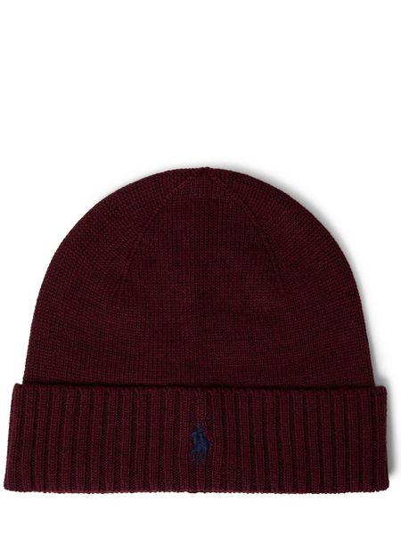 Polo Ralph Lauren Męska wełniana czapka Mężczyźni Wełna czerwony marmurkowy, ONE SIZE