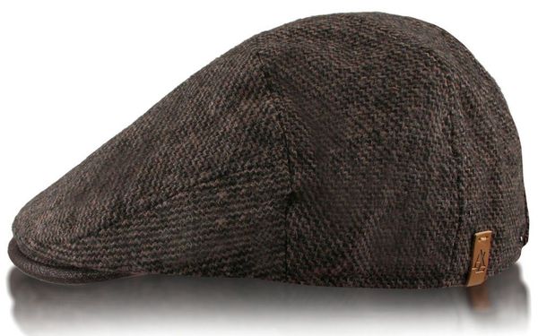 Melanżowy, Ocieplany Kaszkiet Męski z Wełną – Alties – Brązowy
