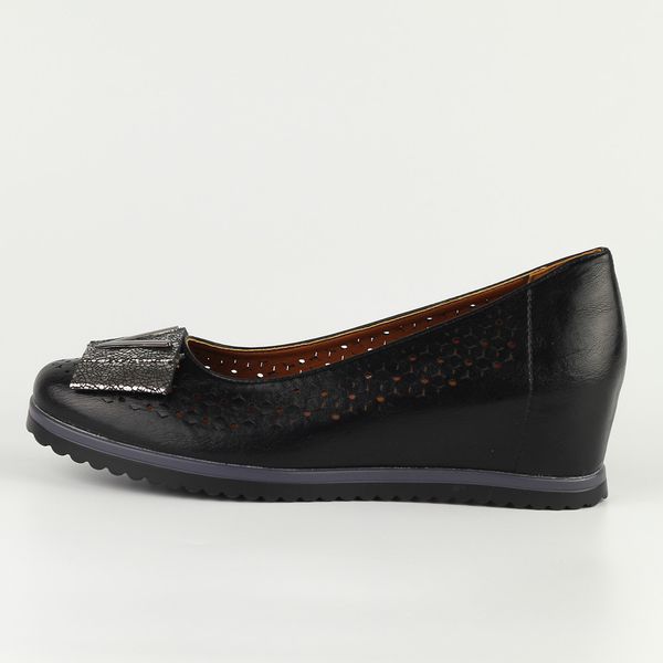 Czarne pu ażurowe czółenka damskie na koturnie M.Daszyński Sa199-6
