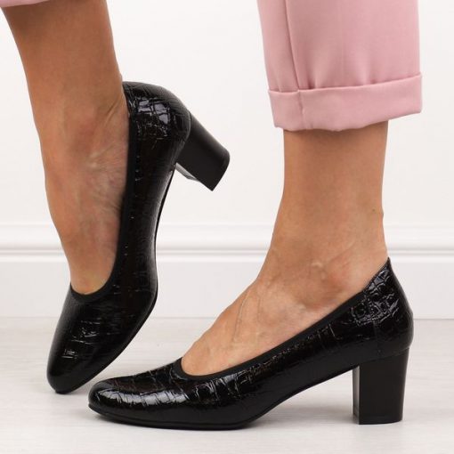 Czarne lakierowane czółenka damskie na słupku Vinceza 58307