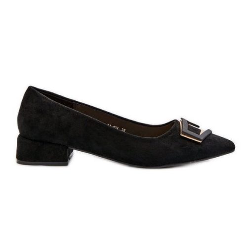 Czółenka Na Niskim Obcasie Z Ozdobą Eko Zamszowe S.Barski KV27-034 Czarne