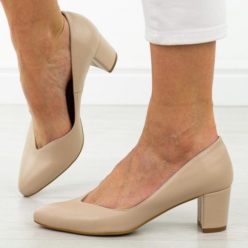 Beżowe s128 Polskie czółenka damskie na słupku Prestige 2219