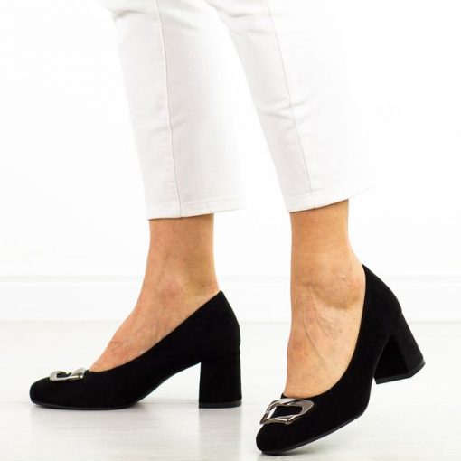 Czarne zamszowe czółenka damskie na słupku Potocki 12549