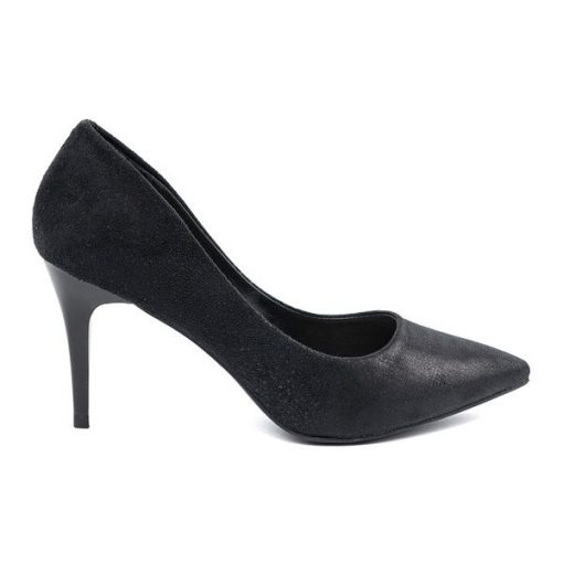 Czarne Eleganckie Czółenka Vices na Szpilce z Brokatem i Wkładką ze Skóry Naturalnej Sarinna