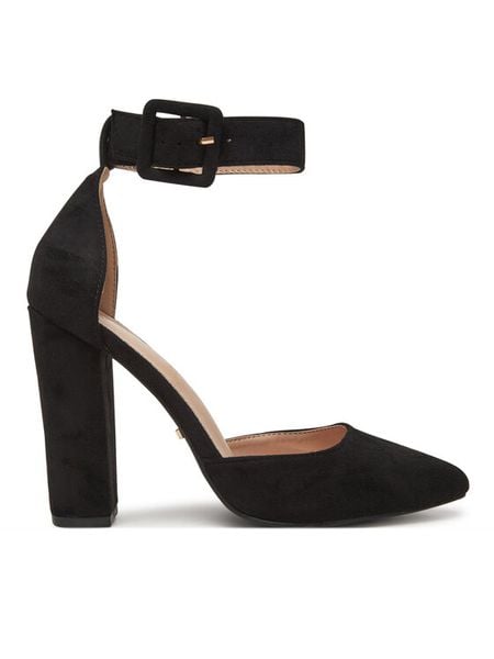 Czarne Czółenka z Lakierowanej Ekoskóry na Słupku Zapinane na Dwie Sprzączki Tevia