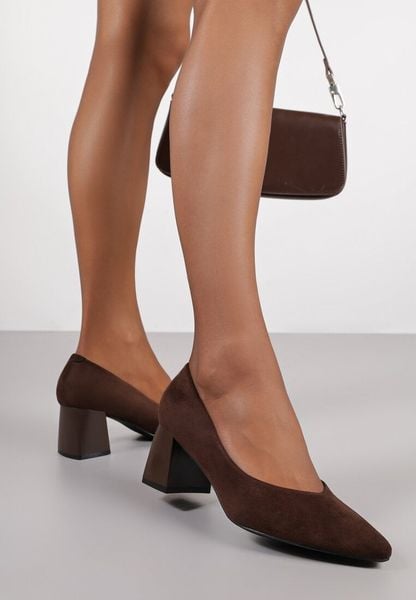 Brązowe Czółenka Vices na Geometrycznym Obcasie z Wkładką ze Skóry Naturalnej Midvire