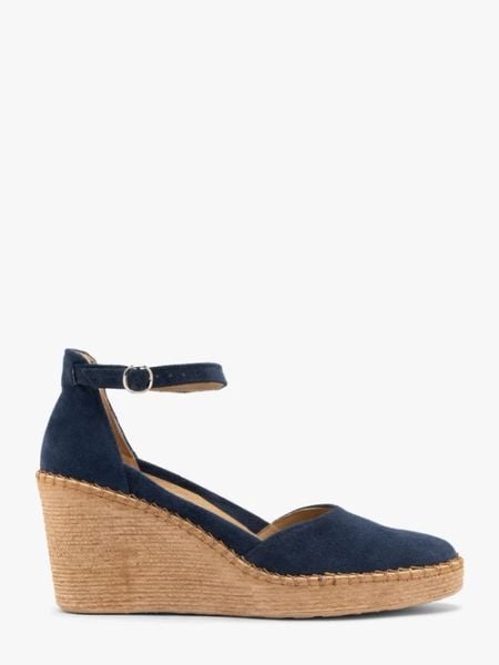 Granatowe czółenka na platformie z paskiem wokół kostki