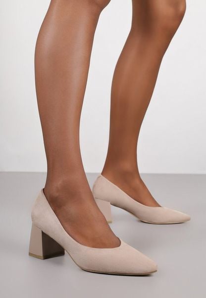 Ciemnobeżowe Klasyczne Czółenka Vices na Obcasie ze Skórzaną Wkładką Ravalitha