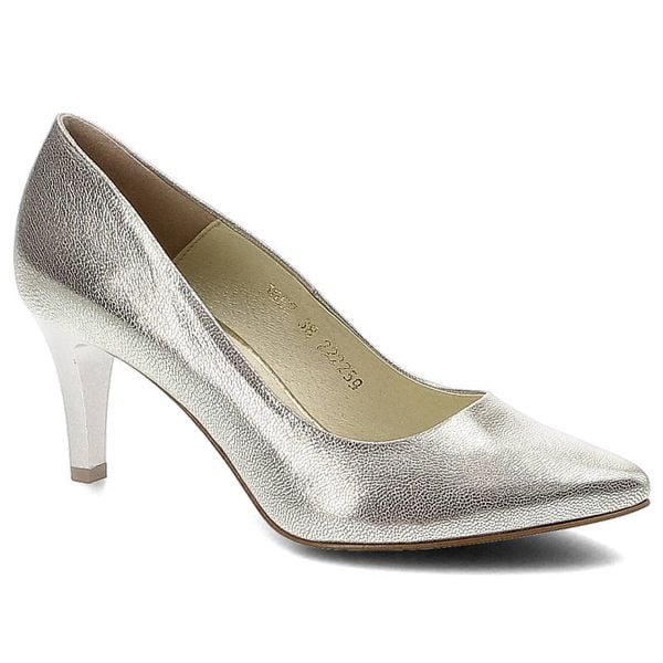 Czółenka damskie Clasicco, czółenka na obcasie wykonane ze skóry licowej z metalicznym wykończeniem szpiczastym noskiem i smukłym obcasem typu szpilk