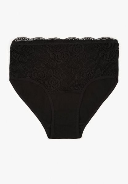 Czarne Bawełniane Majtki Figi z Koronkowymi Zdobieniami Idissa