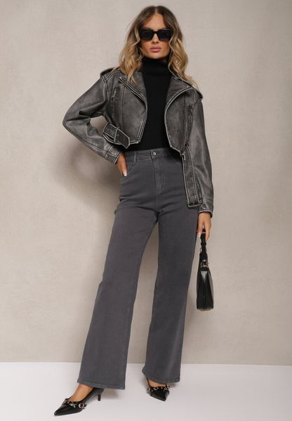 Ciemnoszare Bawełniane Jeansy o Szerokim Fasonie z Paskiem w Komplecie Neveaura