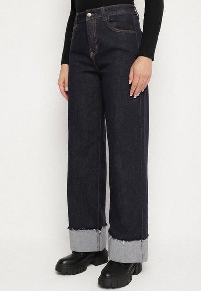 Granatowe Jeansy z Szerokimi Podwiniętymi Nogawkami Zenise