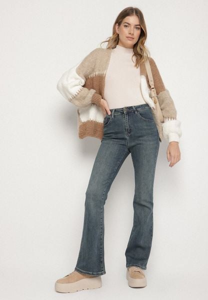 Niebieskie Jeansy Dzwony z Wysokim Stanem Fesanera