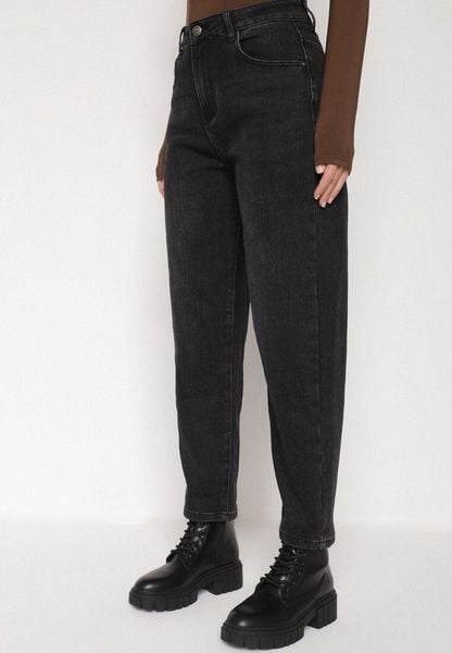 Czarne Jeansy Mom Fit z Wysokim Stanem z Domieszką Wiskozy Aclonna
