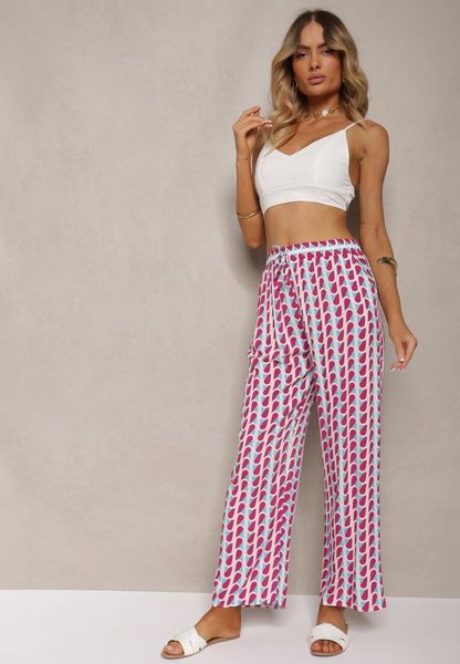 Różowo-Niebieskie Szerokie Spodnie z Wiskozy w Abstrakcyjny Print Zanessa