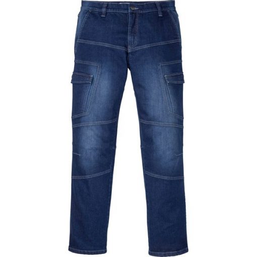 Świetne dżinsy bojówki z elastycznego materiału z efektem sprania w fasonie regular fit, straight z ozdobnymi szwami. Rozporek z zapięciem na zamek. Można prać w pralce.