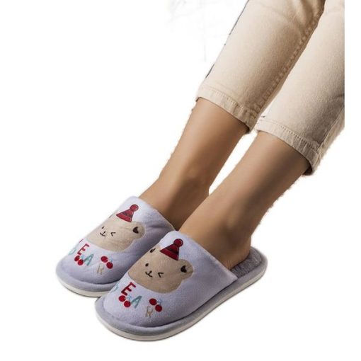 Kapcie wsuwane, na płaskiej podeszwie. Z zabudowanym noskiem, ozdobionym aplikacją z motywem zwierzęcym. Wykonane z miękkiego materiału. Jeżeli szukasz uroczych i ciepłych kapci – model ten z pewnością Cię zachwyci!Szare miękkie kapcie Bear. Sprawdź na butymodne.pl! Inna marka Kapcie domowe damskie w świetnej cenie. Promocje oraz darmowa dostawa.