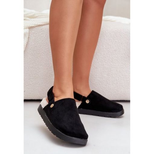 Kapcie Damskie Na Platformie Ocieplane Futerkiem Typu Baranek Czarne Sanilora
