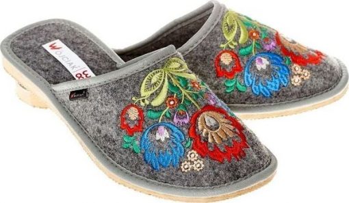Wójciak Płaskie kapcie filcowe zabudowane z pięknym haftem pw126 38