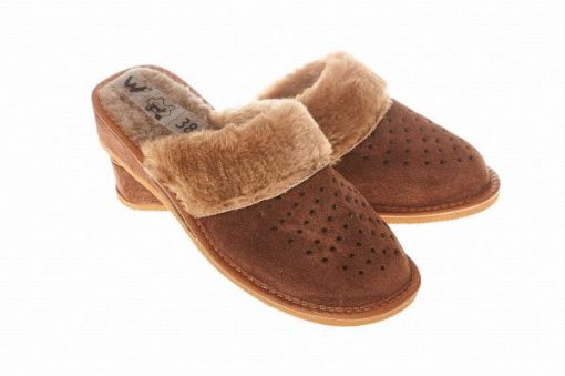 Ciepłe zabudowane Damskie kapcie skórzane z owczą wełną Wójciak Podhale Obuwie 41