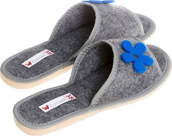 Wójciak Wsuwane odkryte kapcie z filcu pantofle z niebieskim kwiatem pw117 38