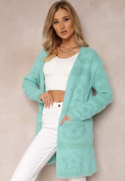 Kardigan Aborra wykonany z puszystej, dzianinowej tkaniny z dłuższym włosiem. Niezapinany fason. Z przodu naszyte kieszenie.
