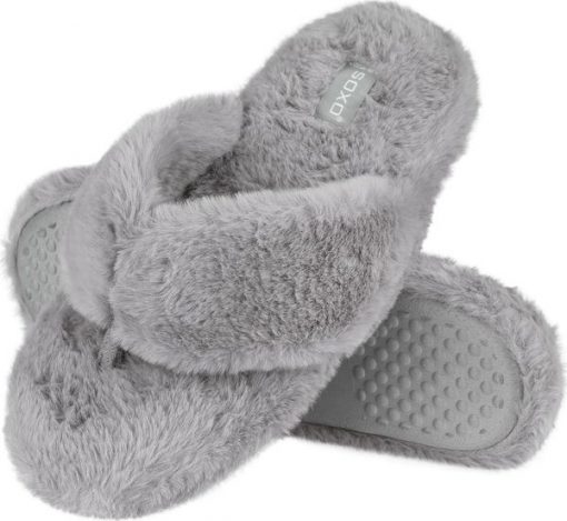 Soxo Damskie futrzane Kapcie Japonki SOXO szare z twardą podeszwą TPR 3738