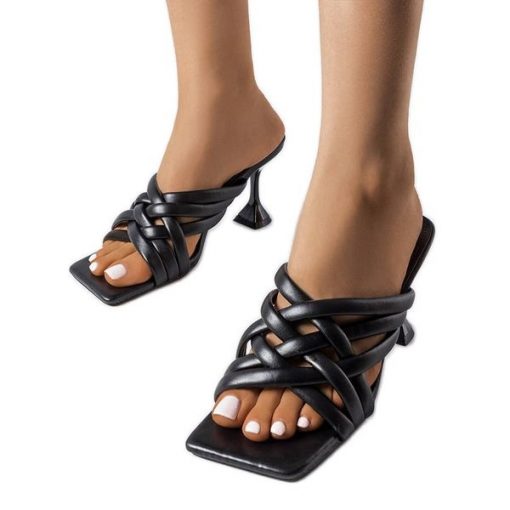 Czarne eleganckie klapki na obcasie