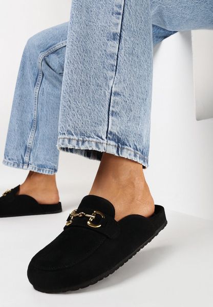 Czarne Klapki z Ekozamszu z Okrągłymi Noskami i Klamrą Fiviala