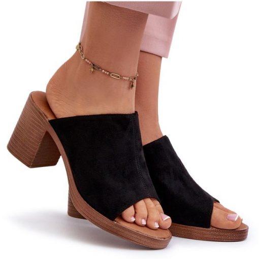 Eleganckie Lekkie Klapki Damskie Na Obcasie Czarne Varnila