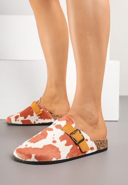 Beżowo-Pomarańczowe Klapki w Stylu Chodaków Ozdobione Klamrą Alvessia