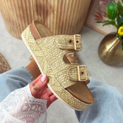 Beżowe klapki damskie na platformie T.Sokolski SKL25-322