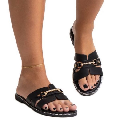Czarne klapki z eco skóry ze złotymi dodatkami Drahomíra