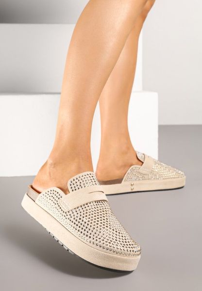 Beżowe Klapki Ozdobione Paskiem i Cyrkoniami Aludessa