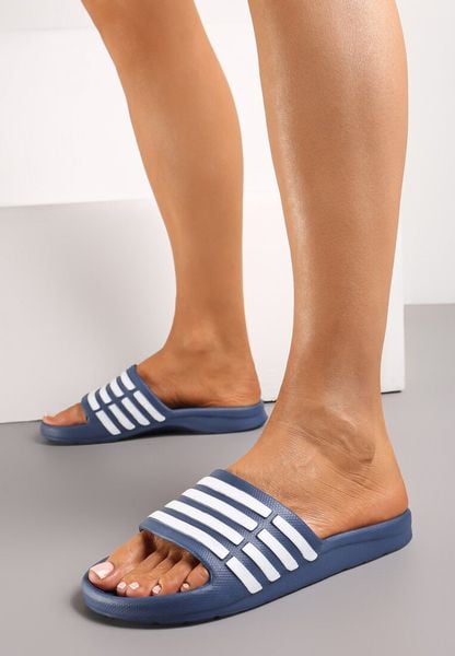 Granatowo-Białe Piankowe Klapki z Szerokim Paskiem Leoffia