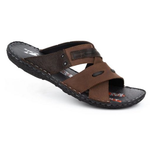 Kampol Klapki męskie skórzane 201/OL brąz nubuk brązowe