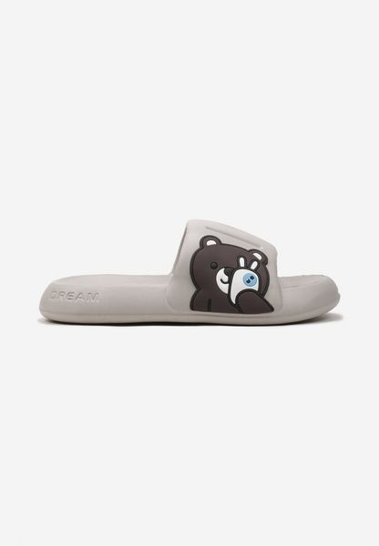 Jasnoszare Klapki Piankowe z Misiem na Szerokim Pasku Yseilve