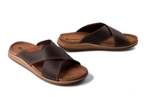 Klapki męskie. Naturalna skóra. Miękka, skórzana wkładka. Elastyczna podeszwa.