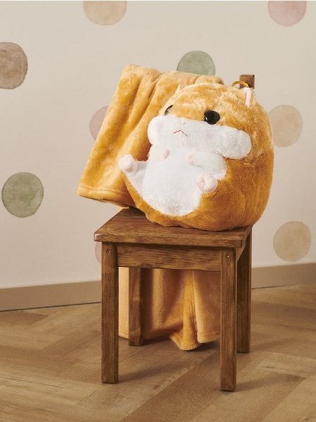Pluszowa przytulanka w kształcie chomika z kocykiem.