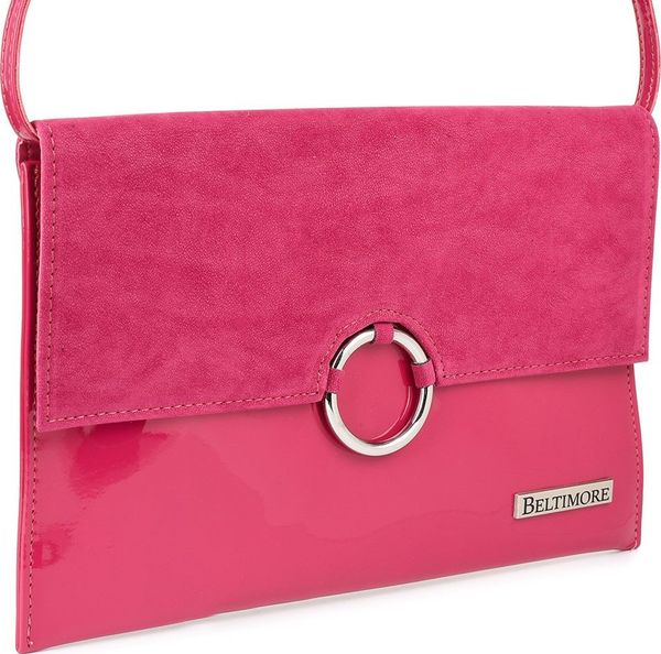 Beltimore Różowa oryginalna damska torebka kopertówka na pasku usztywniana W63