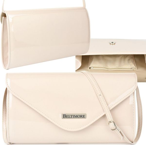 Beltimore Ecru lakierowana damska torebka wieczorowa kopertówka BELTIMORE M78