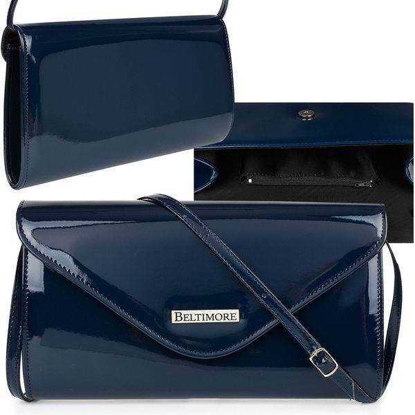 Beltimore Granatowa lakierowana damska torebka wieczorowa kopertówka BELTIMORE M78