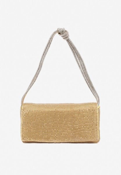 Złota Torebka Kopertówka Vices Ozdobiona Cyrkoniami Develia