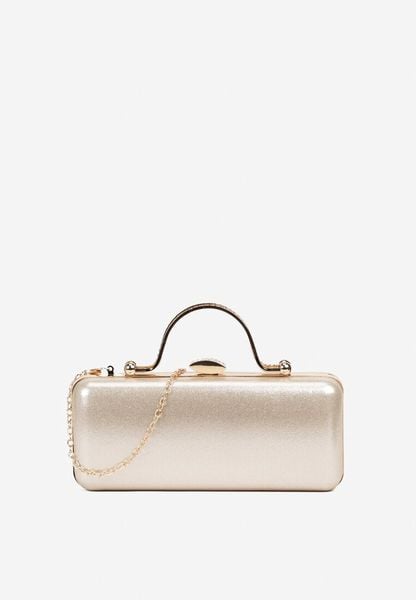 Złota Torebka Kopertówka z Cyrkoniami Łańcuszkiem i Ozdobną Rączką Evalagia